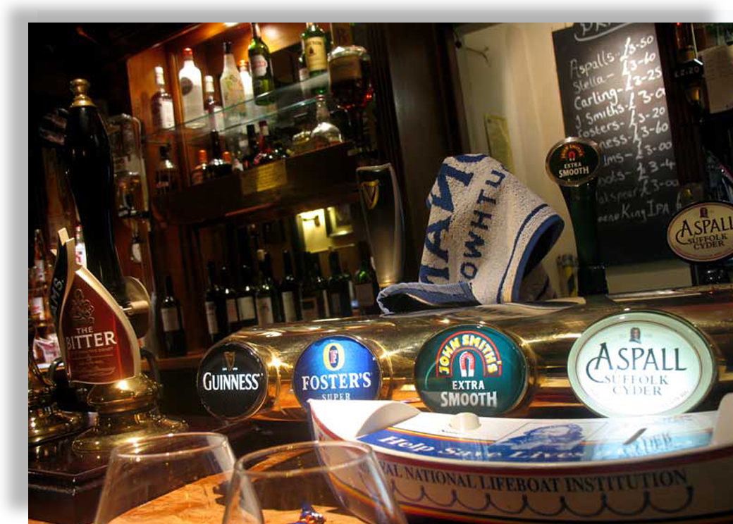 Beer taps at the Angel Inn, Wangford England